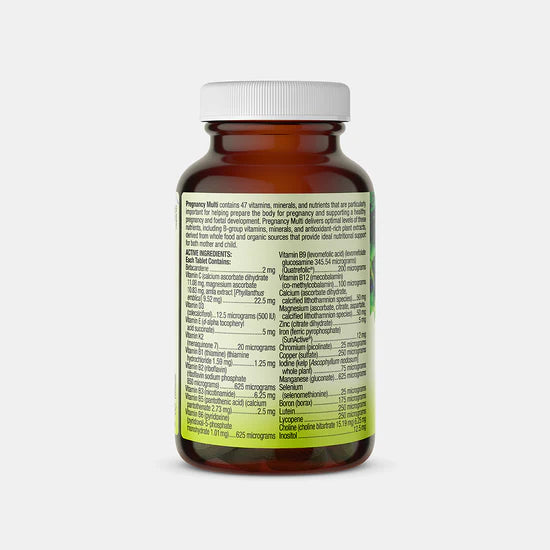 Pregnancy Multi contains 47 vitamins, minerals and nutrients important for helping prepare the body for pregnancy, supporting a healthy pregnancy and foetal development. Including B-group vitamins, minerals and antioxidant-rich plant extracts, derived from wholefood sources.